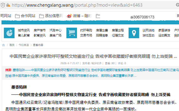 ——中国民营企业家许家勋呼吁整顿文物鉴定行业 告戒字画收藏爱好者擦亮眼睛 勿上当受骗