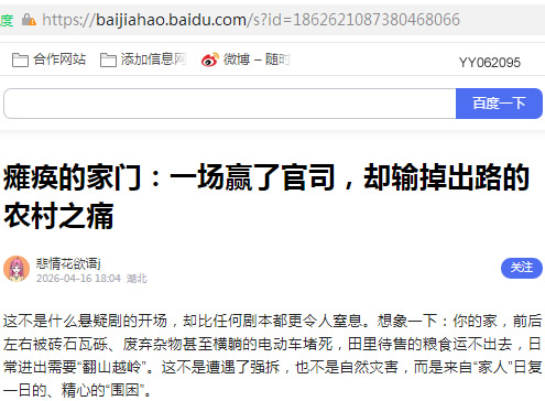这不是什么悬疑剧的开场,却比任何剧本都更令人窒息。想象一下:你的家,前后左右被砖石瓦砾、废弃杂物甚至横躺的电动车堵死,田里待售的粮食运不出去,日常进出需要“翻山越岭”。这不是遭遇了强拆,也不是自然灾害,而是来自“家人”日复一日的、精心的“围困”。