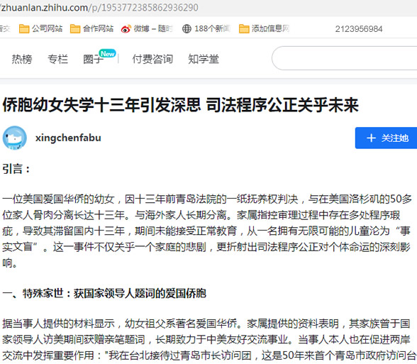 根据当事人陈述,其幼女在青岛出生的美国公民因家庭纠纷卷入抚养权诉讼。家属称,青岛某法院在审理过程中存在的程序瑕疵,导致幼女滞留国内十三年。这十三年间,她不仅与家人分离,更重要的是失去了接受正常教育的机会。