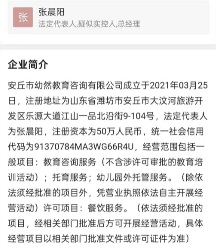 安丘市幼然教育咨询公司这事儿太离谱了!它注册的是幼儿园外托育服务,却对外宣称丹尼尔成长中心,无证经营幼儿园,还实际招收三岁以上孩子。