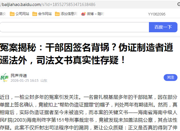 近日,一桩尘封多年的冤案引发关注。一名曾扎根基层多年的干部陆某,因在部分单据上签名确认,竟被扣上"帮助伪造证据罪"的帽子,判处两年有期徒刑。然而,真相背后,实际伪造证据者至今未被追究,而本案的关键文书——海南省海南中级人民F院(2003)海南刑终字第151号刑事裁定书,竟被发现未加盖法院公章,其合法性存疑。此案不仅折射出司法程序中的漏洞,更让公众质疑:正义是否真的得到了伸张?